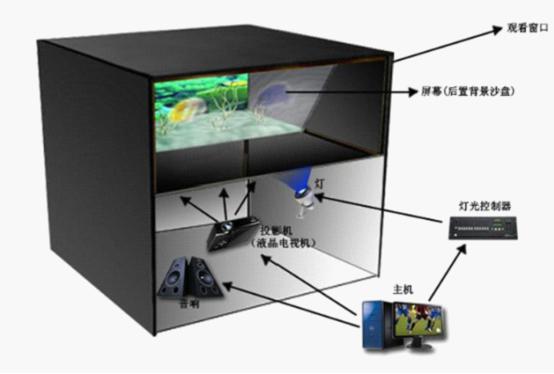幻影劇場是一種集結(jié)了聲、光、電等多媒體形式,并利用光線的反射、折射、衍射原理來制作的成像設備,同時幻影劇場還應用到影視制作、剪影與摳像技術、自動控制技術、幻影成像