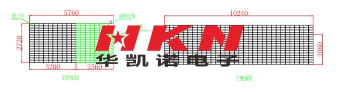如圖所示:用P1.25的LED屏圍成了一個(gè)房間,尺寸為:長(zhǎng)10.24米 寬5.76米 高2.88米
